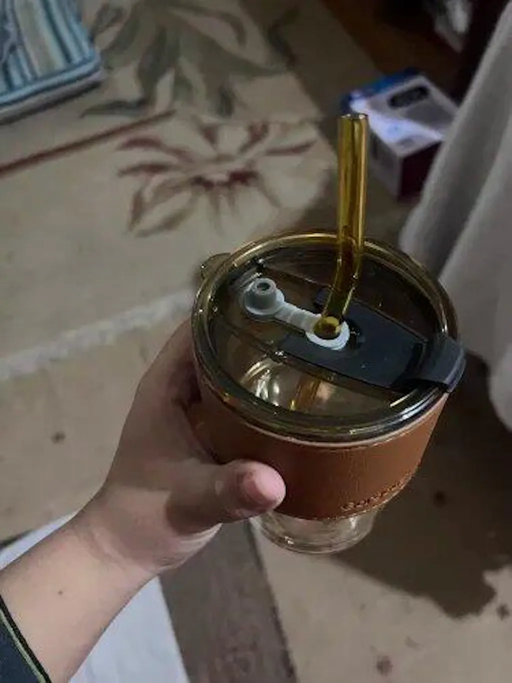 - Travel coffee cup with straw